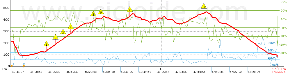 | Climbs > 10% | Average slope | Distances | |