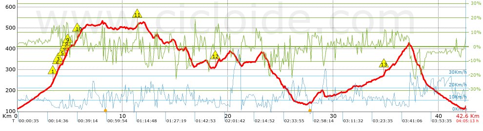 | Climbs > 10% | Average slope | Distances | |